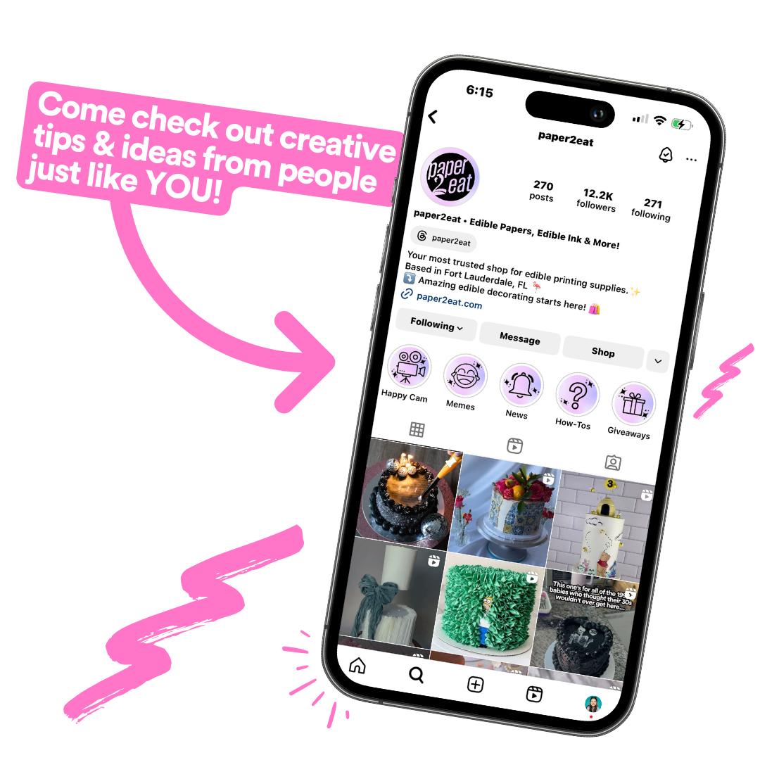Let's bring your awesome ideas to life! Your creativity plus our premium edible papers and inks equals jaw-dropping creations. Expect amazing results every single time.