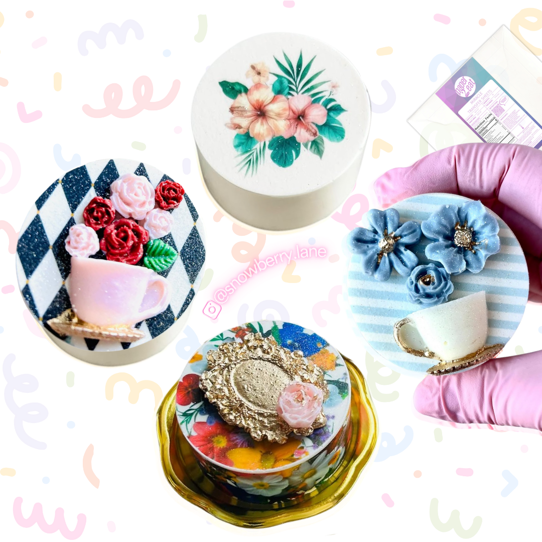 Create memorable pralines, chocolate candy bars, and other unique creations involving chocolate, meringue, isomalt and MORE! Just insert a paper2eat Miracle Transfer Sheet into your edible ink printer, print your desired graphic or text, pour / pipe your medium of choice on the print, then peel it off after it sets! Your design will be embedded onto your creative edible masterpieces and will surely WOW!